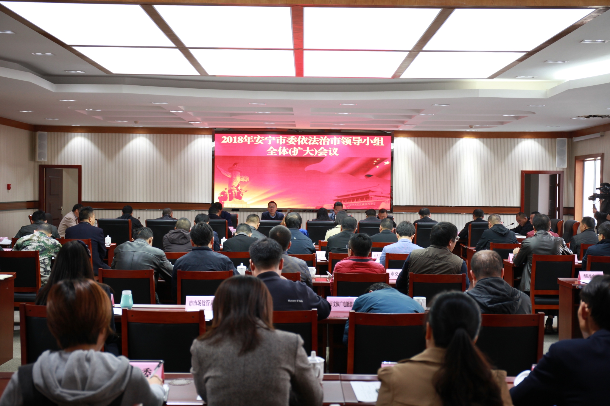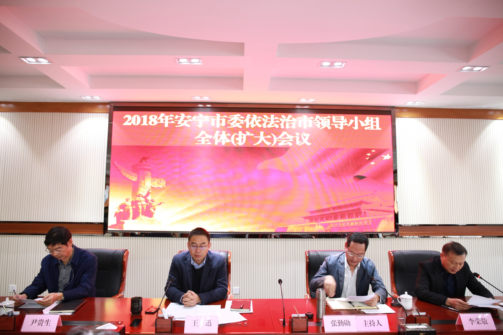 2018年11月2日上午,市委副书记、市人民政府市长、市委依法治市领导小组副组长张勤勋主持召开了2018年市委依法治市领导小组全体(扩大)会议,市委书记、市委依法治市领导小组组长王迅出席会议并作重要讲话。市委依法治市领导小组副组长、成员出席会议,市委依法治市领导小组办公室副主任,各街道(管委会)主要领导、政法委书记,及列入市委依法治市考核单位主要领导参加了会议。