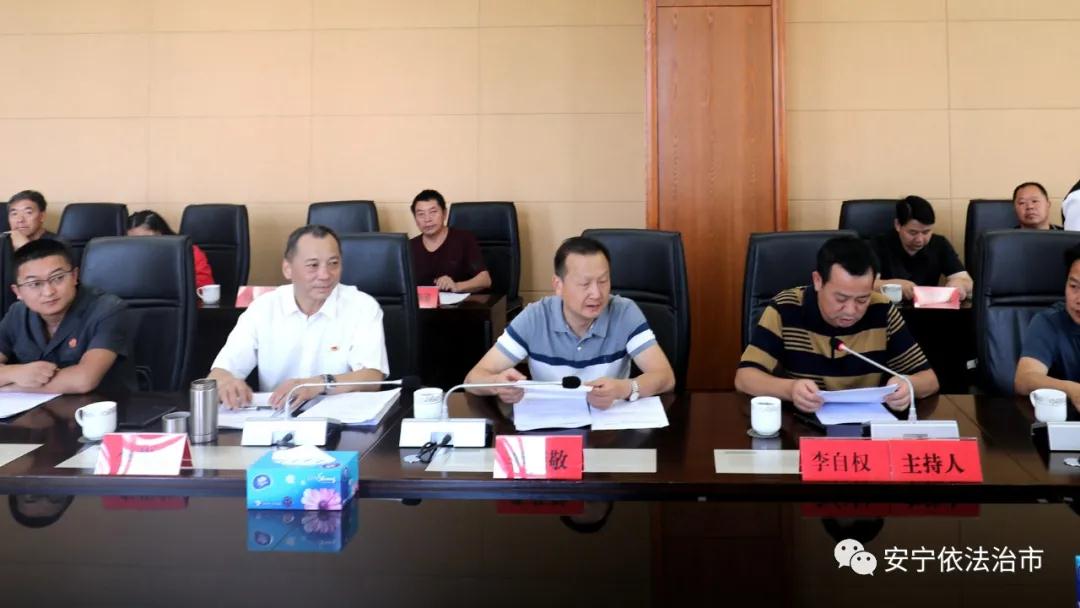 2020年是实施“七五”普法规划的收官之年,为认真总结“七五”普法好的经验和做法,更好地推动全市普法工作新发展,7月29日上午,由昆明市委政法委一级调研员吴疆带队的昆明市“七五”普法第一检查验收组到安宁市进行“七五”普法检查验收。市委常委、市委政法委书记、市普法领导小组组长李荣敬,市司法局局长、市普法办主任李茂文,市人民法院、市人民检察院、市工科信局、市民政局以及各街道普法相关负责人参加会议。