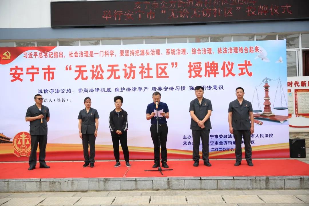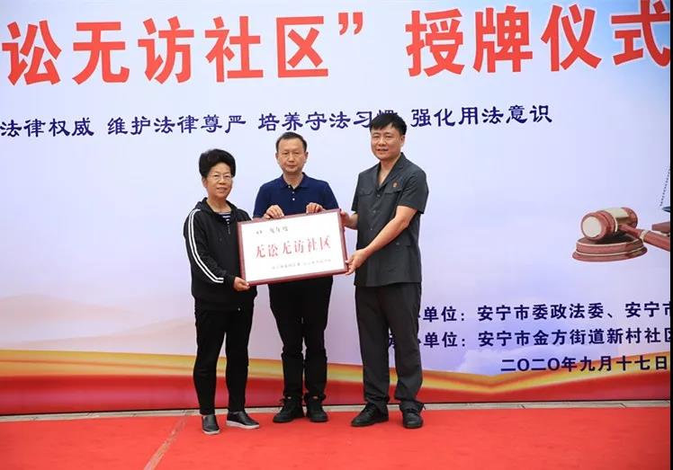 9月17日,安宁市委政法委、安宁市人民法院对安宁市金方街道办事处新村社区授予“无讼无访社区”荣誉。
