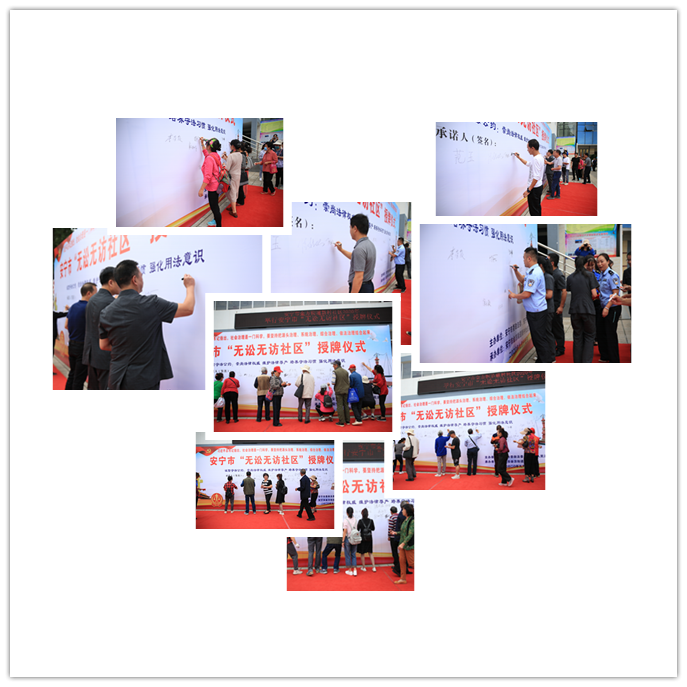 授牌仪式结束后,参加授牌活动的所有人员在印有“崇尚法律权威、维护法律尊严、培养守法习惯、强化用法意识”诚信守法公约的承诺守法展板上签名承诺。