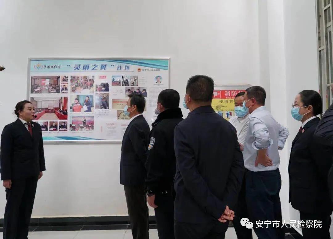 徐显明一行还到安宁检院派驻省未管所“灵雨之翼”未成年人检察工作室,围绕安宁检院 “未检机制引领+司法社工+就业帮教”专业化矫治模式,调研“中国法学会重罪未成年人重返社会研究基地“建设情况。