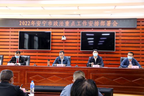 4月14日,安宁市召开2022年政法重点工作安排部署会。市委常委、市委政法委书记杨德勇出席会议并讲话,副市长、市公安局局长刘文先,市法院院长王翁阳,市检察院检察长王辉,市司法局局长杨松,各街道政法委员及30余家责任单位负责人参加会议。
